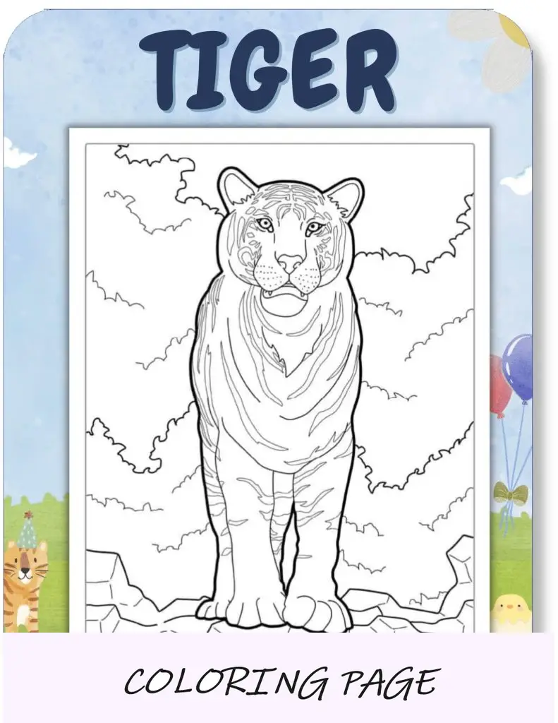 Para um artesanato divertido e perfeito para uma festa de aniversário, escolha uma página para colorir de animal onde o rosto do animal seja grande o suficiente para cobrir o rosto de uma criança.