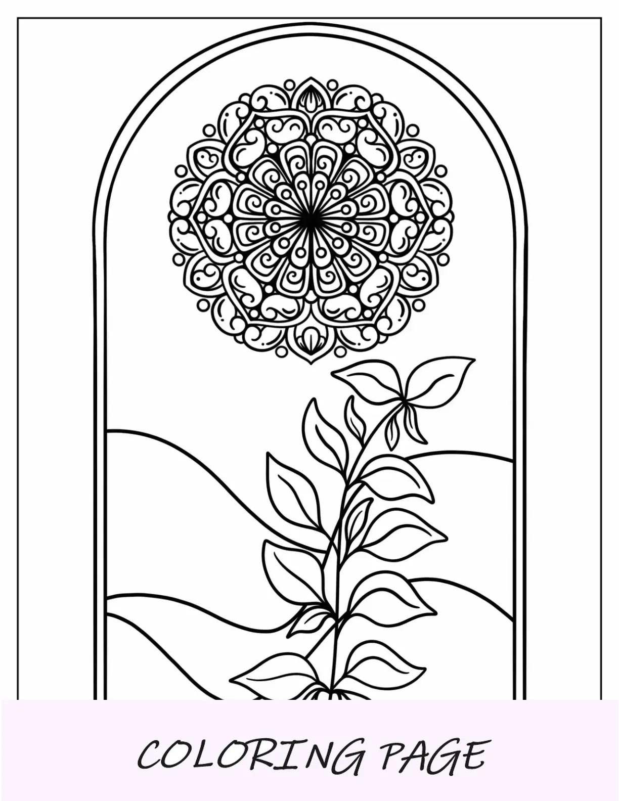 Desenho para colorir de arco Boho com mandala e planta
