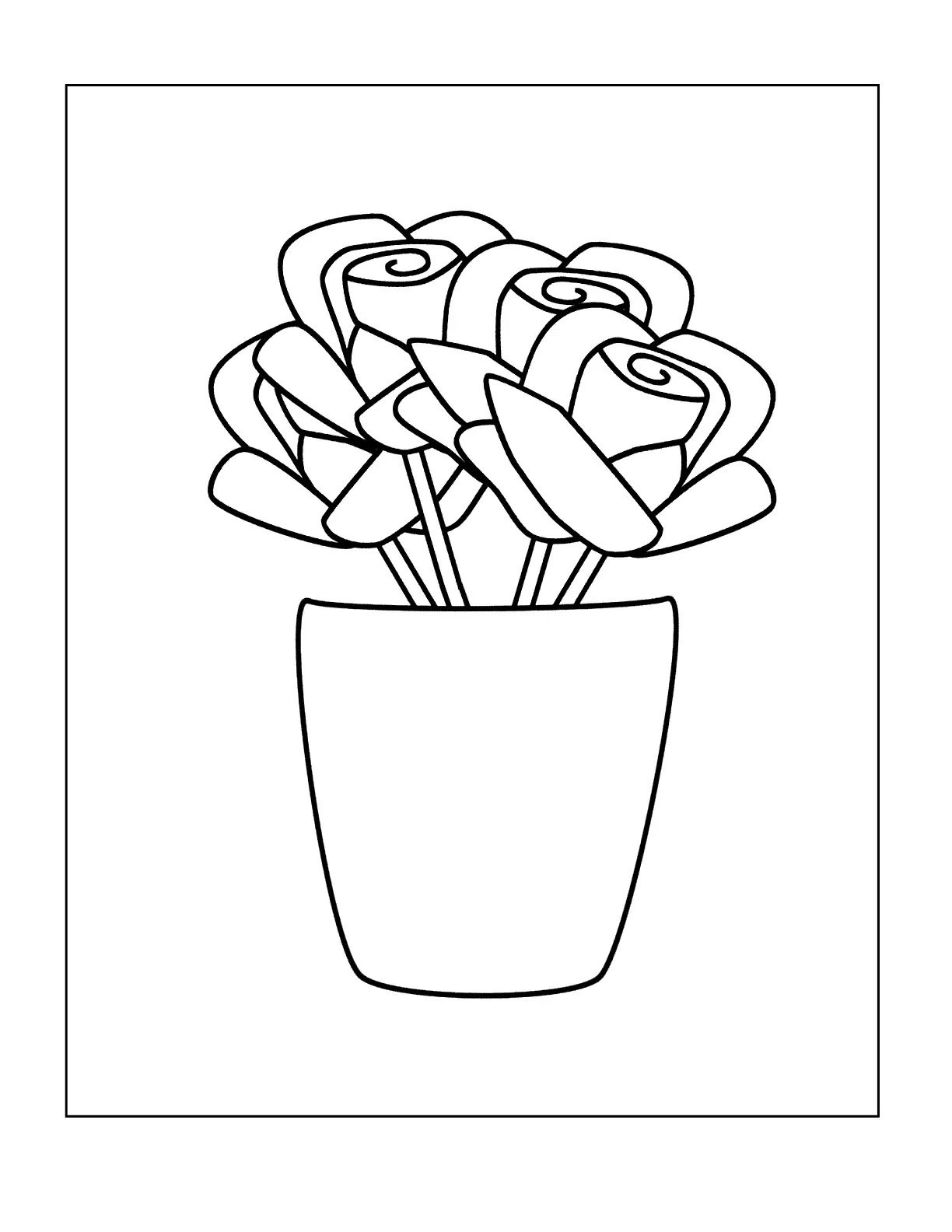Página para colorir da panela de flores de rosas