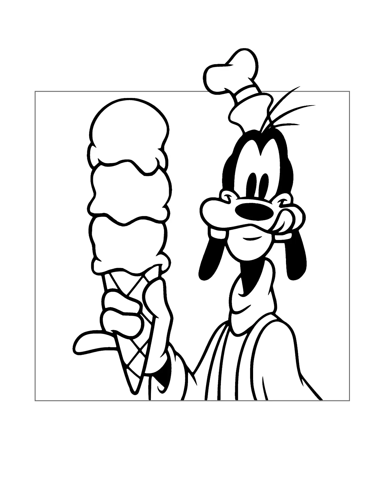 Página para colorir de casquinha de sorvete Triple Scoop Goofys
