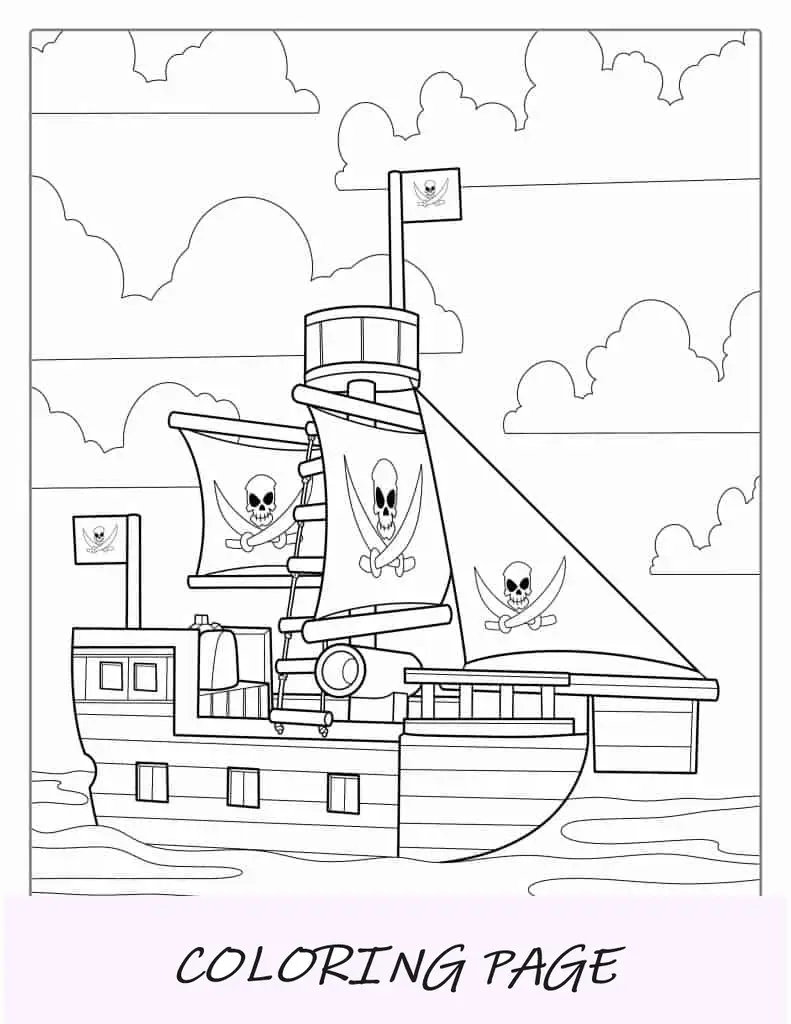 Incluídos nesta série estão vários estilos, tipos e temas piratas, incluindo navios piratas Lego, navios piratas com crânio e velas de osso, navios piratas com canhões, navios piratas fáceis de colorir para crianças pequenas, o navio pirata Pérola Negra e muitos outros!