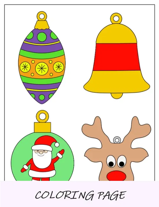 Enfeites de Natal simples para impressão para colorir (sino, anjo, estrela, bugiganga)