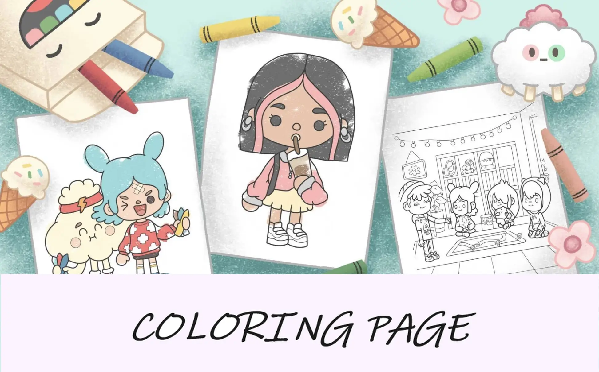 Página detalhada para colorir do pôster mundial da Toca Boca Life