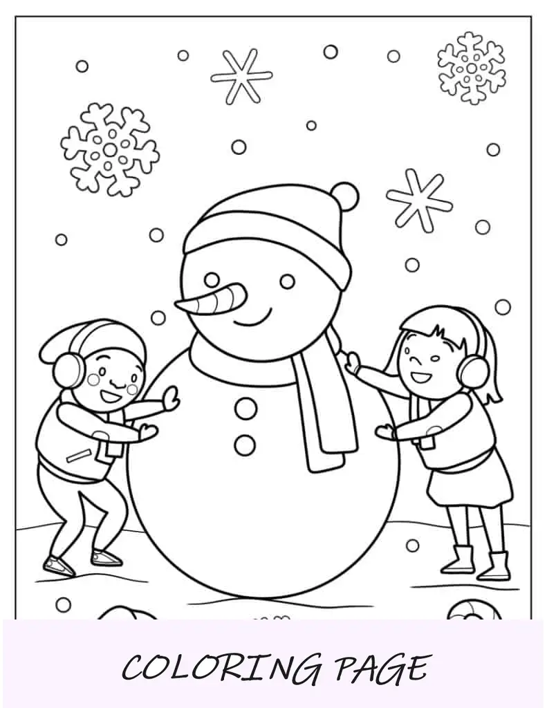 Página para colorir de inverno de janeiro com boneco de neve